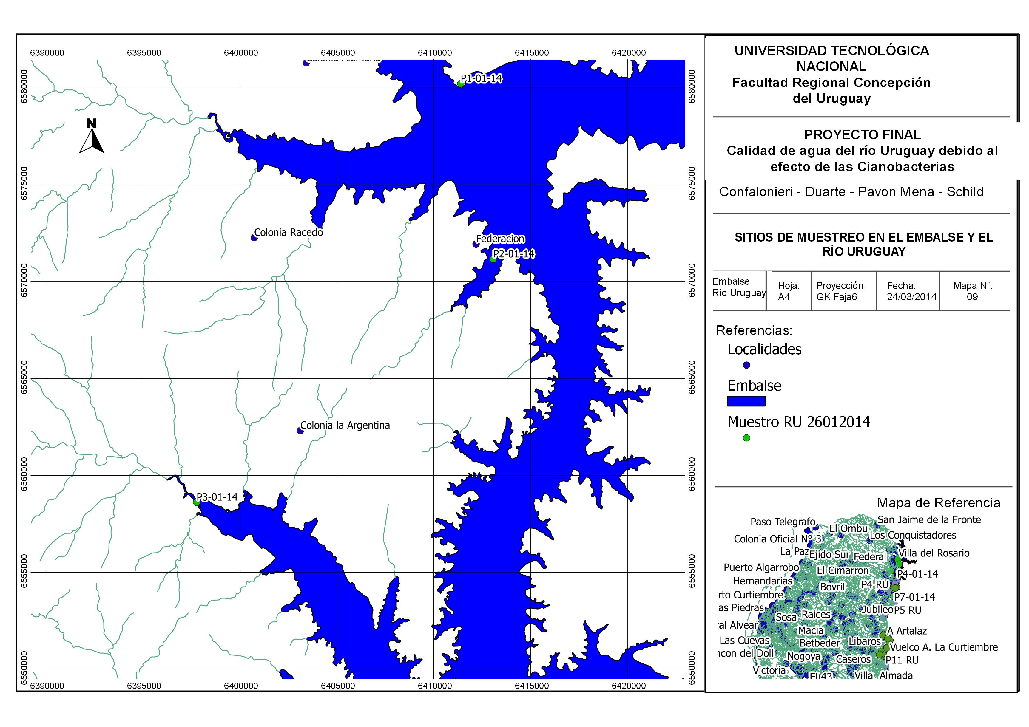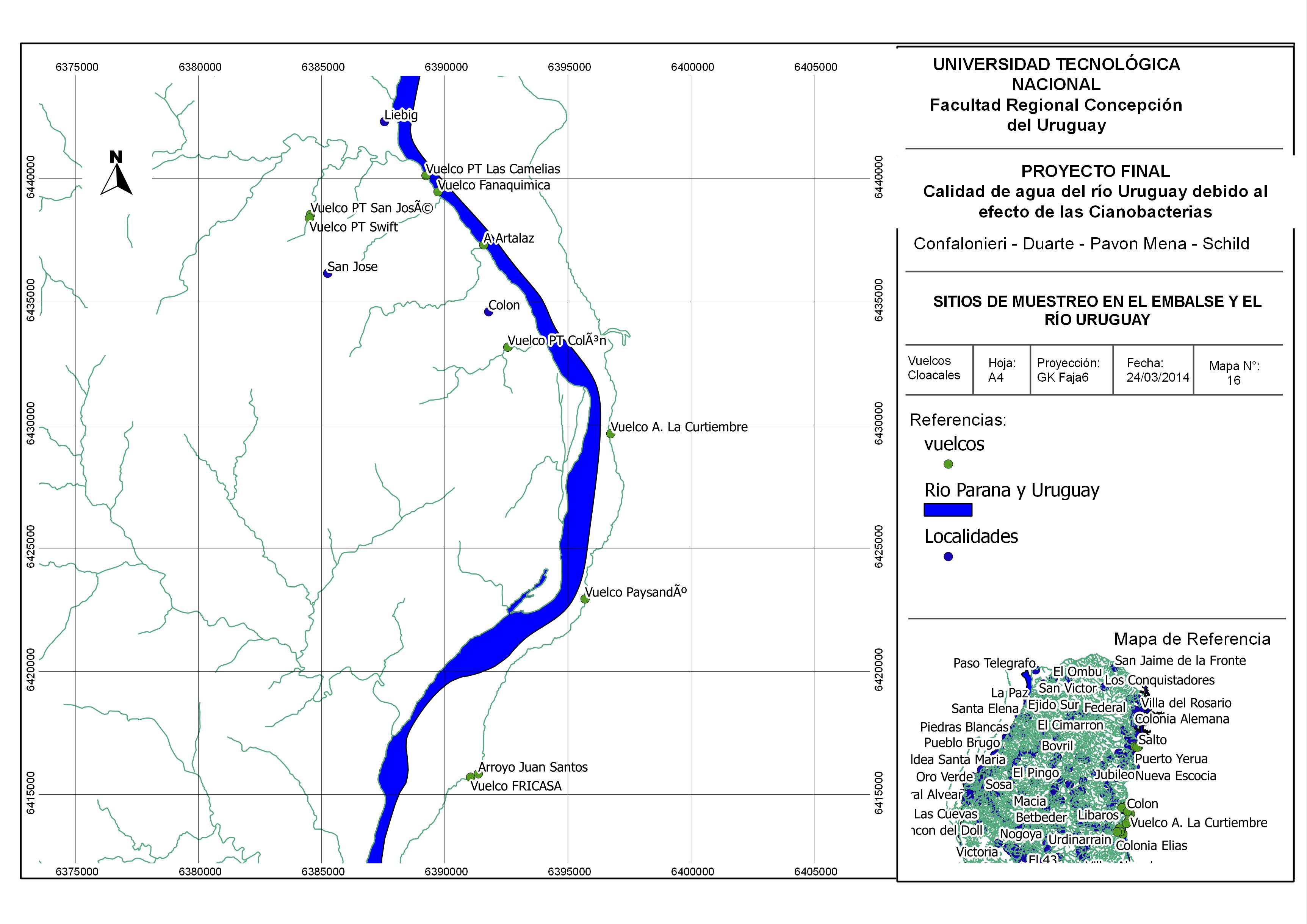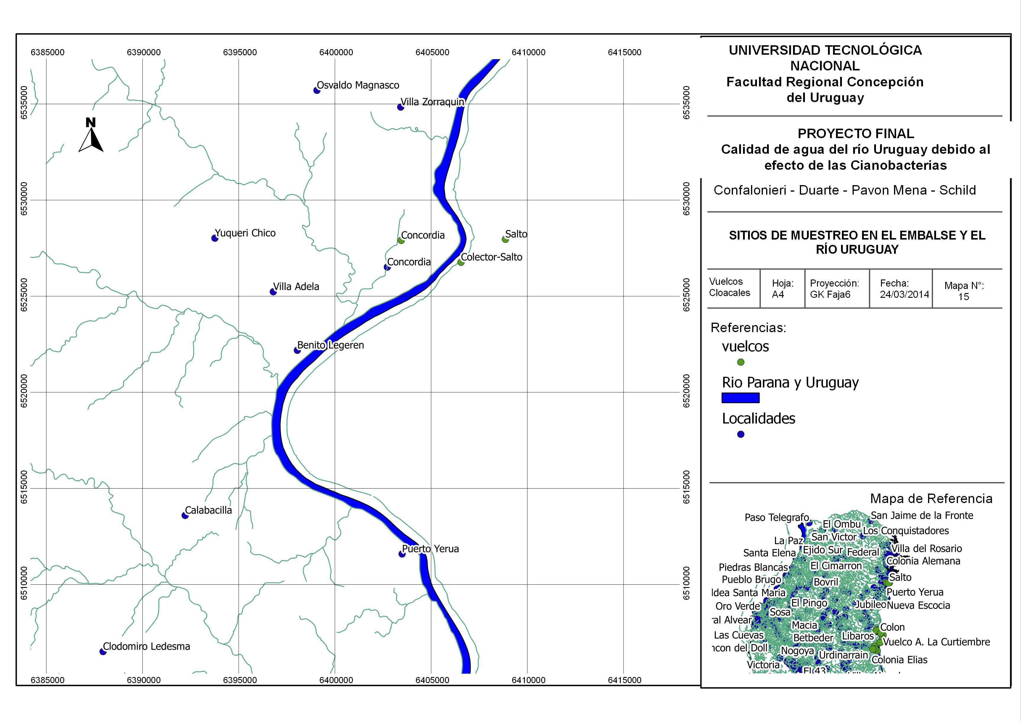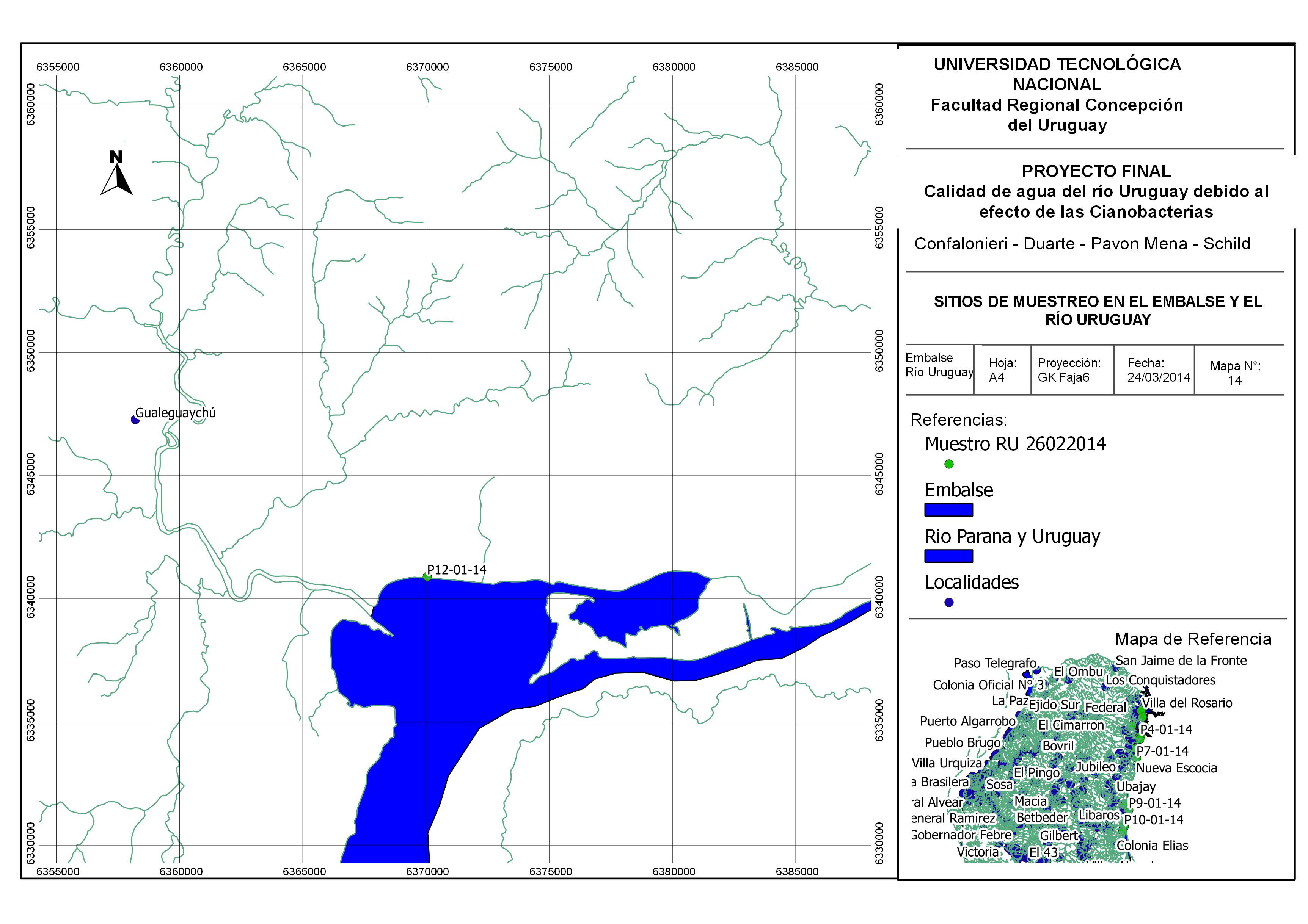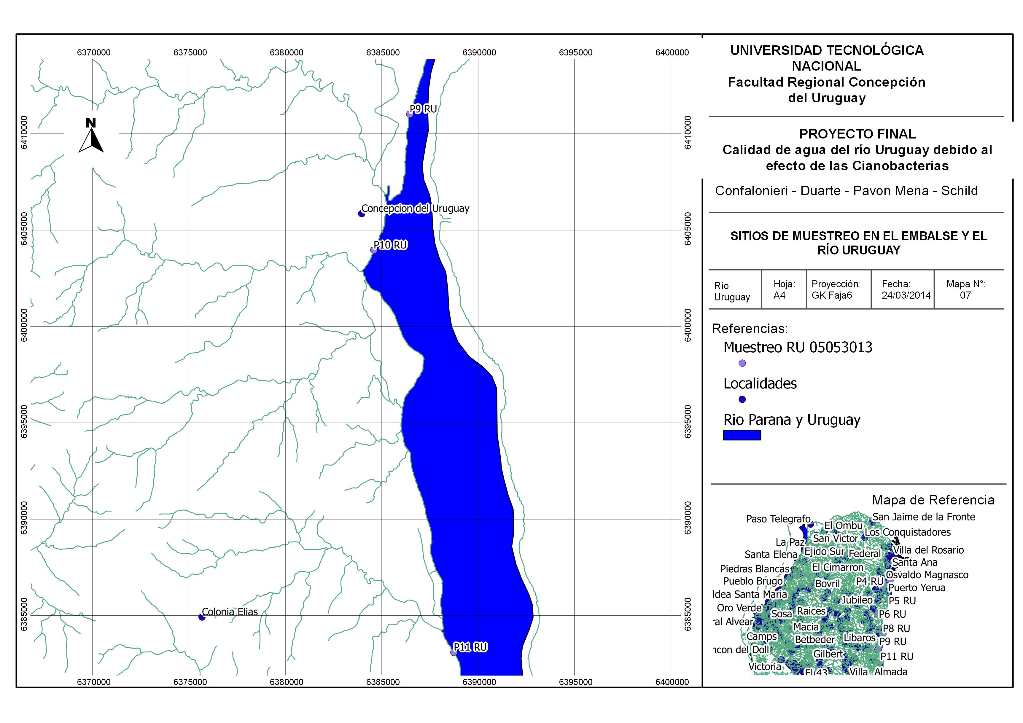Calidad del agua debida al efecto de las cianobacterias en el tramo de estudio Concordia-Salto, Gualeguaychú-Fray Bentos