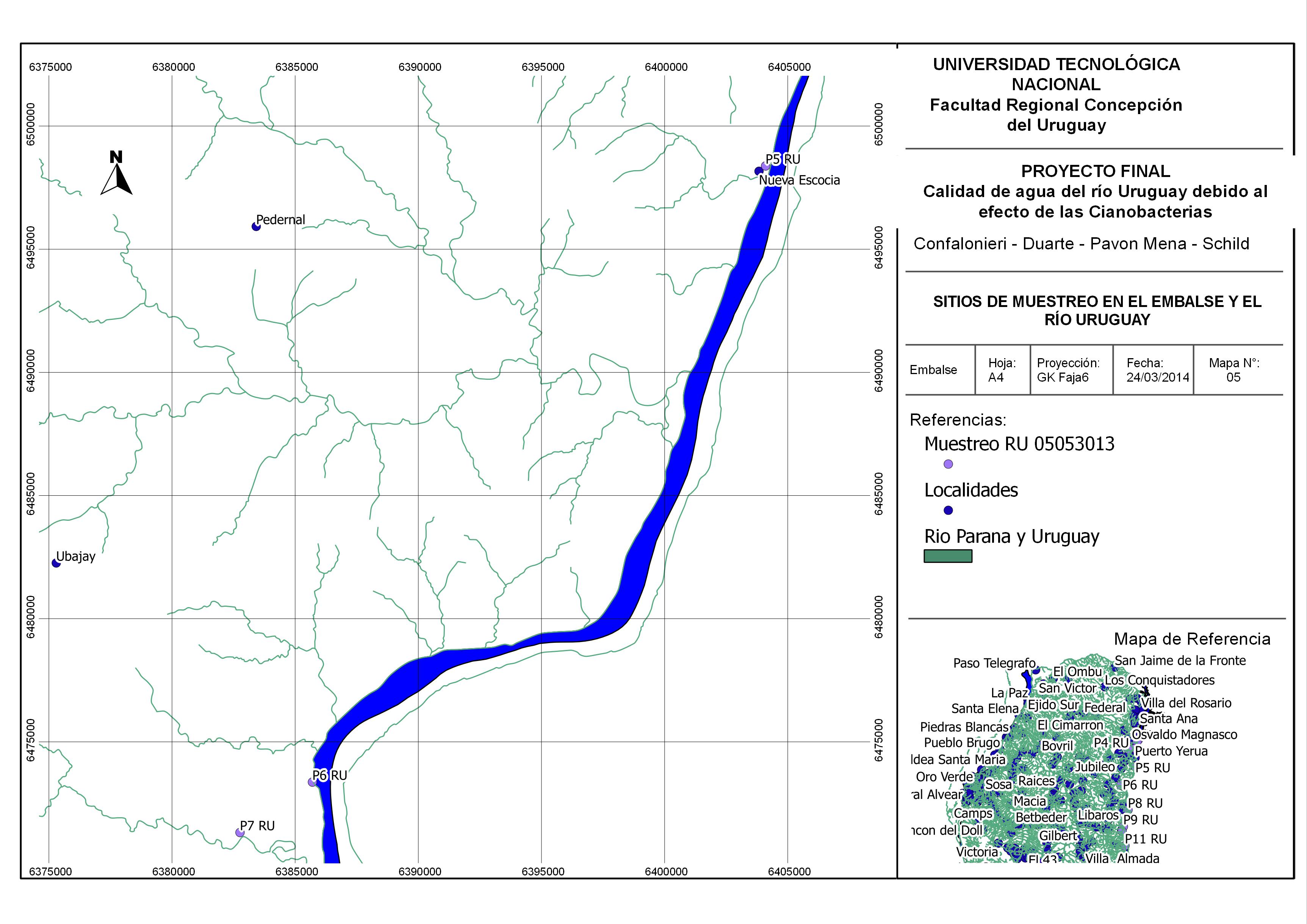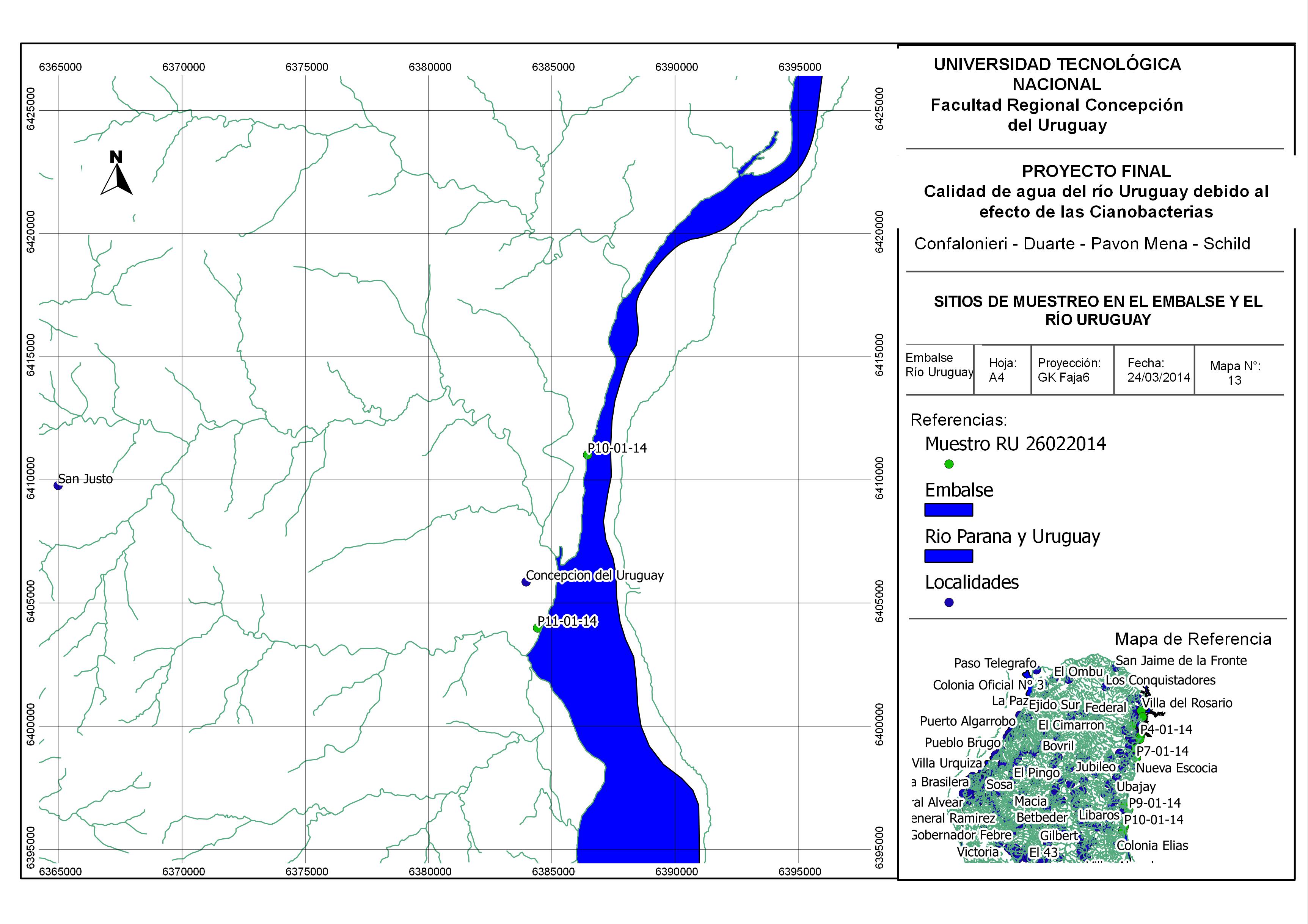 Los objetivos generales de esta línea de investigación son el estudio y evaluación de la dispersión y concentración de nutrientes y parámetros indicadores de calidad de aguas, durante eventos extraordinarios de floración algal sobre el río Uruguay, en el tramo Concordia-Salto a Gualeguaychú-Fray Bentos, debido principalmente a las descargas puntuales y distribuidas provenientes de aguas residuales domésticas que son vertidas directa o indirectamente al sistema acuático.