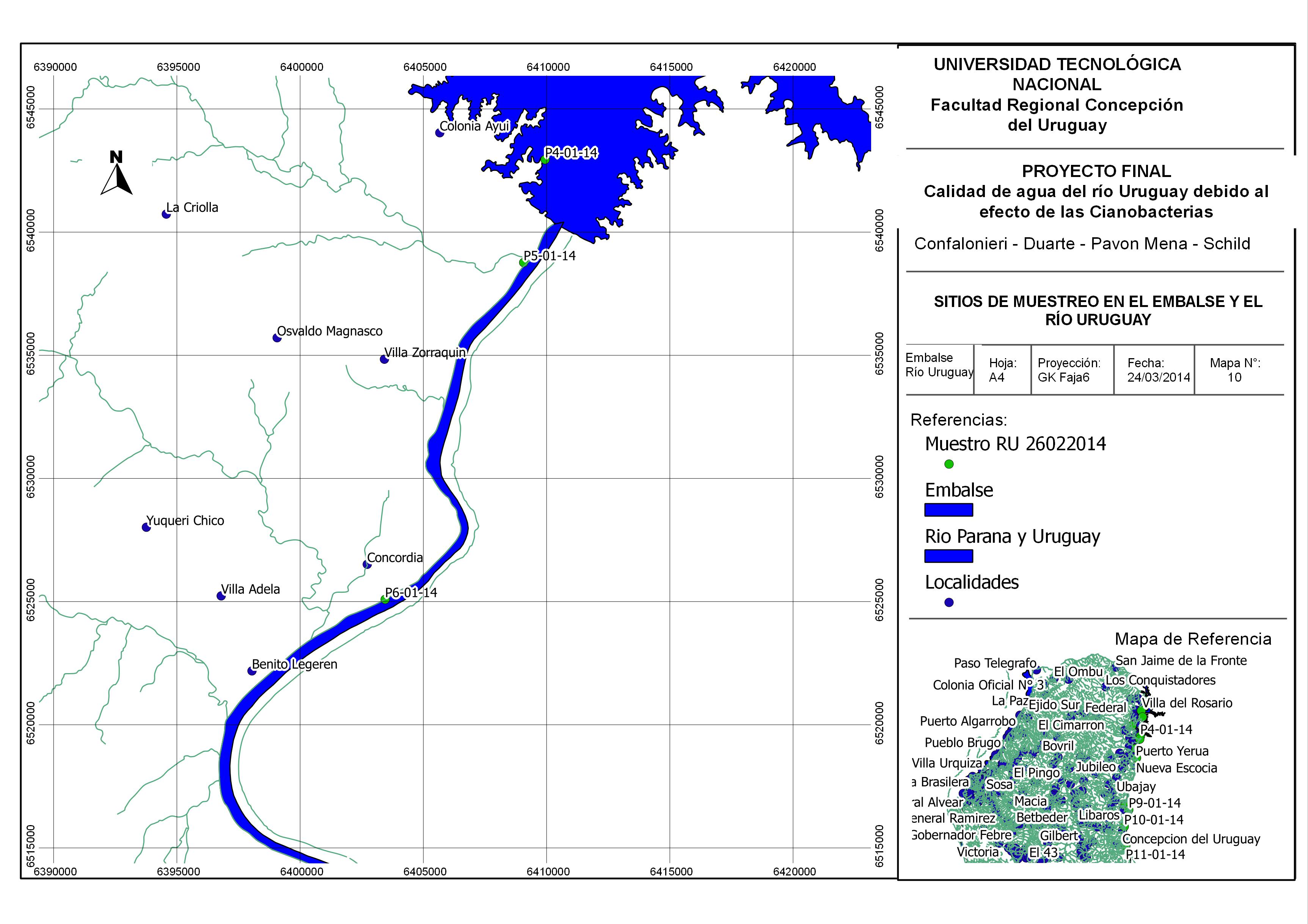 Calidad del agua debida al efecto de las cianobacterias en el tramo de estudio Concordia-Salto, Gualeguaychú-Fray Bentos