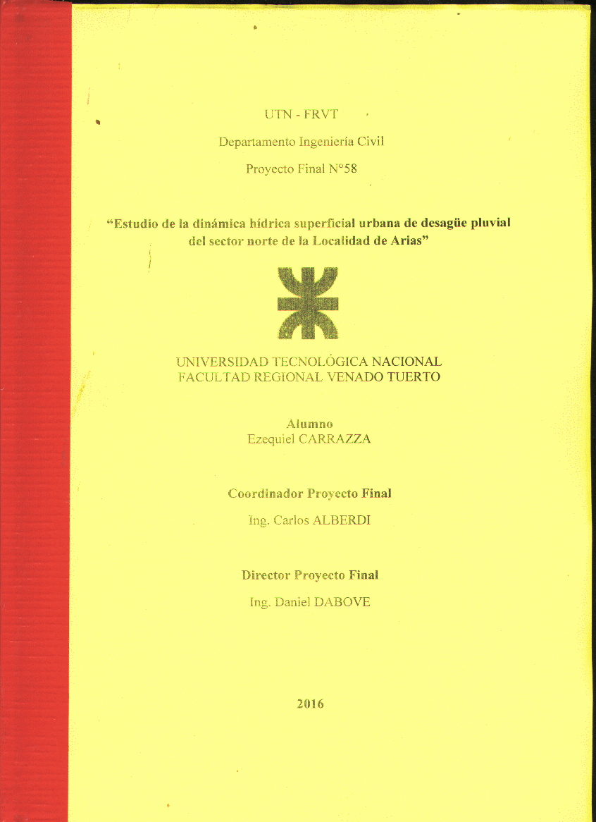 Estudio de la dinámica hídrica superficial urbana de desagüe pluvial del sector norte de la Localidad de Arias.